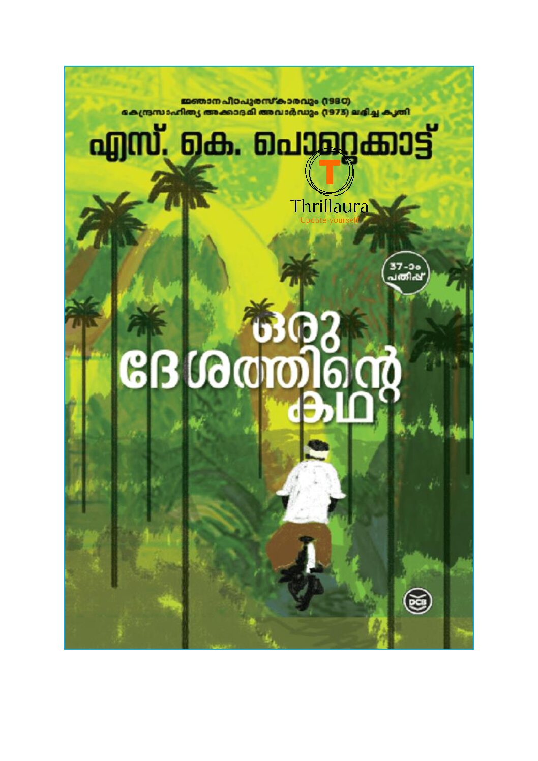"Oru Desathinte Katha" (The Story of a Homeland) is a renowned Malayalam novel written by S.K. Pottekkatt. Set in the backdrop of the scenic athiranippadam region in Kerala, the novel delves into the complexities of human relationships, cultural dynamics, and social changes. Through the protagonist, Ravi, Pottekkatt explores themes of identity, tradition, and the struggle for survival in an evolving society. The novel beautifully captures the essence of the athiranippadam landscape, its people, and their struggles, creating a vivid and thought-provoking narrative that reflects the wider human condition. Pottekkatt's masterful storytelling and lyrical language make "Oru Desathinte Katha" a timeless classic of Malayalam literature.
